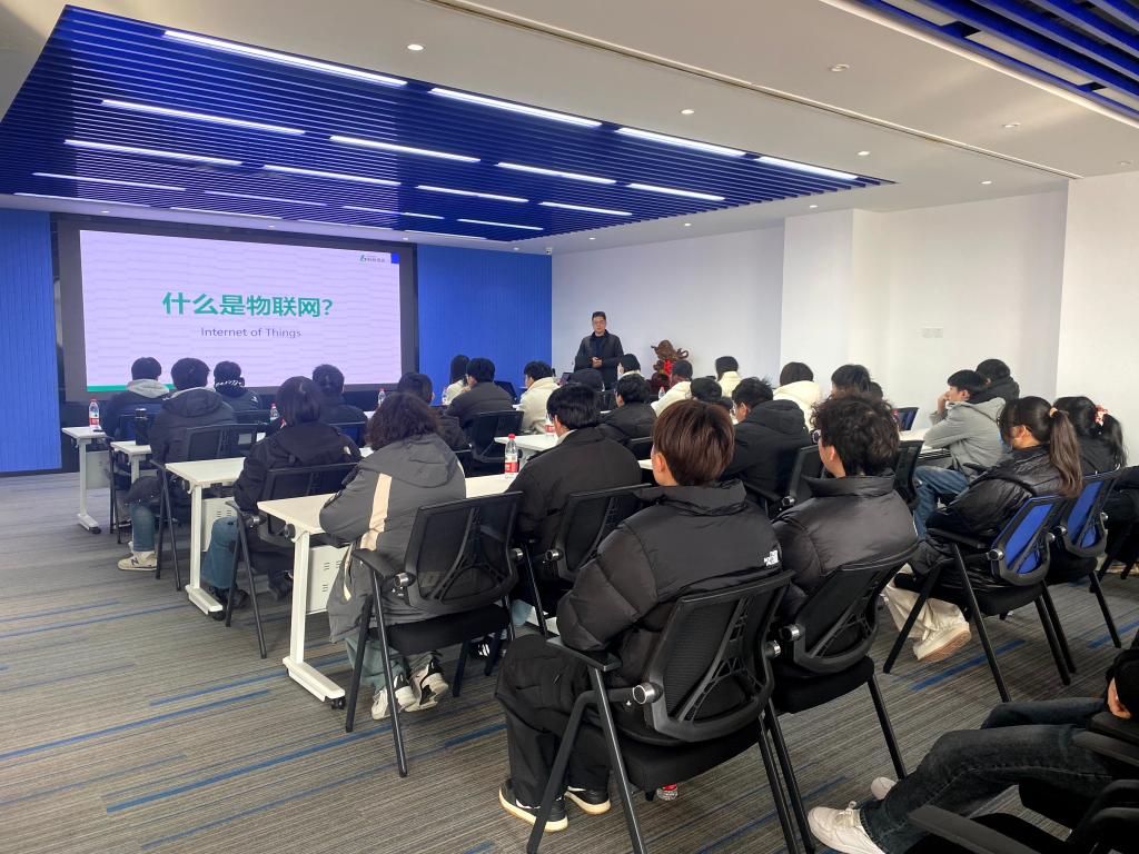 在青岛大牧人机械股份有限公司,技术专员详细介绍了涵盖自动喂料、环境控制、智能集蛋等全流程的养殖设备体系。随后,师生团队前往青岛科创信达科技有限公司,负责人为大家呈现了物联网技术赋能畜牧产业的全景画面。企业负责人通过“小科爱牧”智慧养殖大数据平台操作演示,直观展示了如何通过二十万台以上的智能终端采集养殖环境、畜禽体征、设备运行等多维度数据,再经云端分析转化为精准饲喂方案和疫病预警信息。让物联网应用技术专业的学生们找到了课堂知识的应用落点。