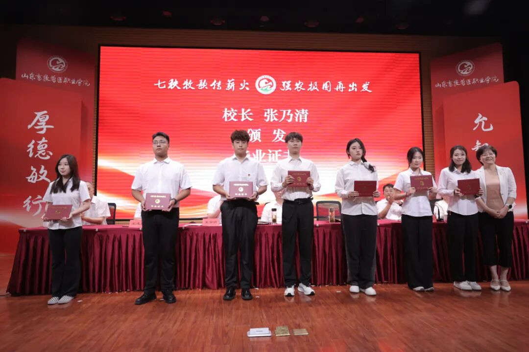 六月繁花绽,今朝别梦长。2025年6月28日,山东畜牧兽医职业学院2025届毕业生毕业典礼在图书馆报告厅隆重举行,为学子们的校园时光画上难忘句点,也开启逐梦新篇。典礼现场,红色背景板庄重大气,“山东畜牧兽医职业学院2025届毕业生毕业典礼” 字样熠熠生辉。学院领导与教师代表整齐就座,他们目光中满是对毕业生的期许与祝福。